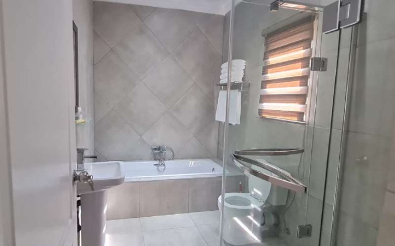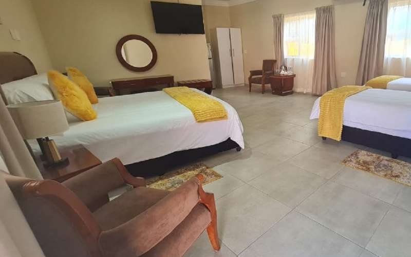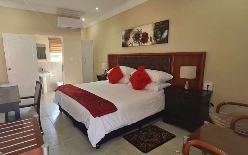 Air-conditioned for comfort, the room is furnished with a king-size bed that can be converted into 2 single beds and has an en-suite bathroom fitted with a shower and a toilet. Room also has a tea and coffee station, TV with DStv and Wi-Fi access.
