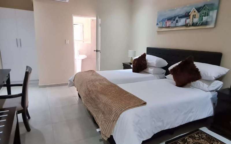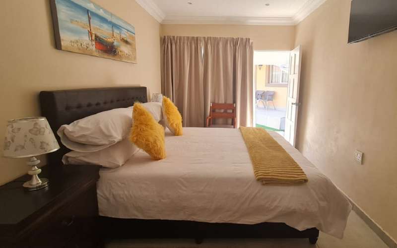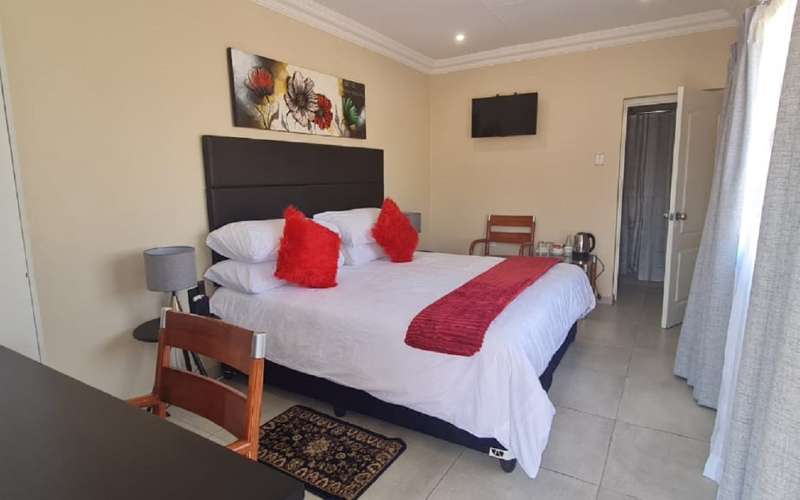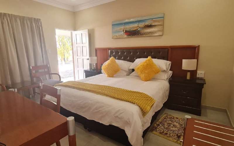 Air-conditioned for comfort, the room is furnished with a king-size bed that can be converted into 2 single beds. The room has a shower, a toilet en-suite and is fitted with a tea and coffee station, TV with DStv and Wi-Fi access.